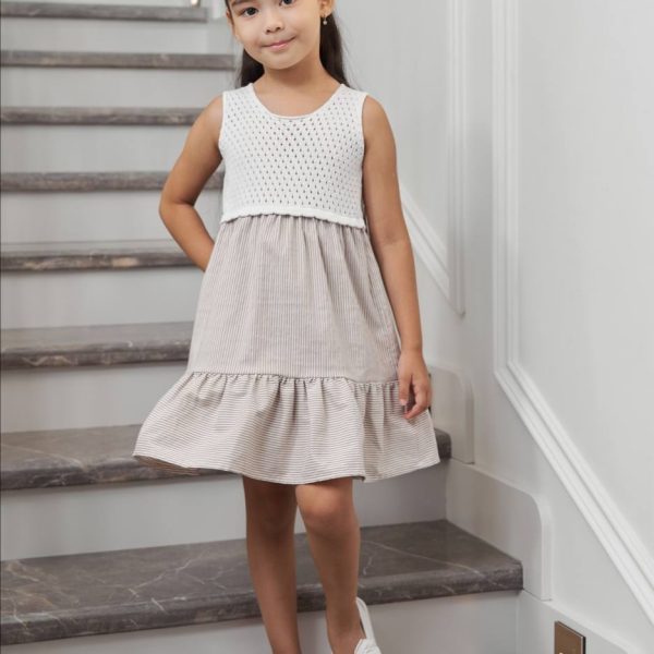 Платье PER TE белый/коричневый Девочки 12 м