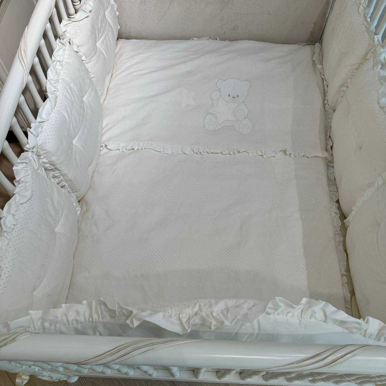 Coordinato 5710 completo di piumone sfoderabile e set completo di paracolpi per Lettini Misura P – San Gallo eStelline – Colore Ecru / Комплект с матраcной основой со съемным пуховым одеялом и бамперами