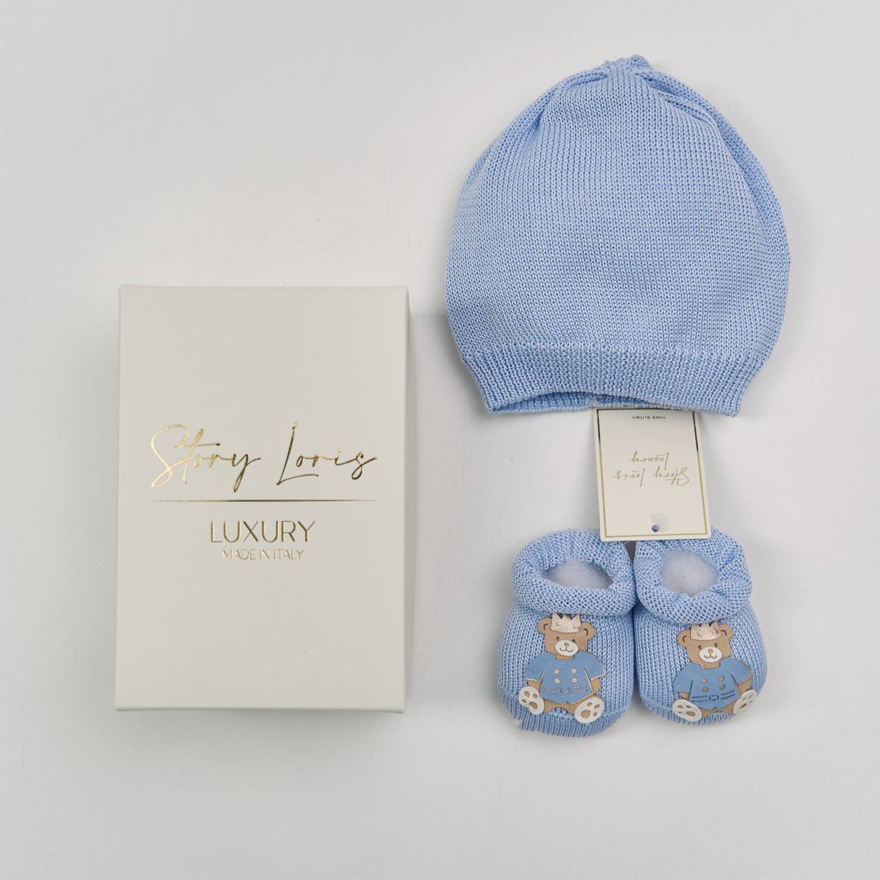 Шапка с пинетками STORY LORIS LUXURY светло-синий Универсальный 1 м