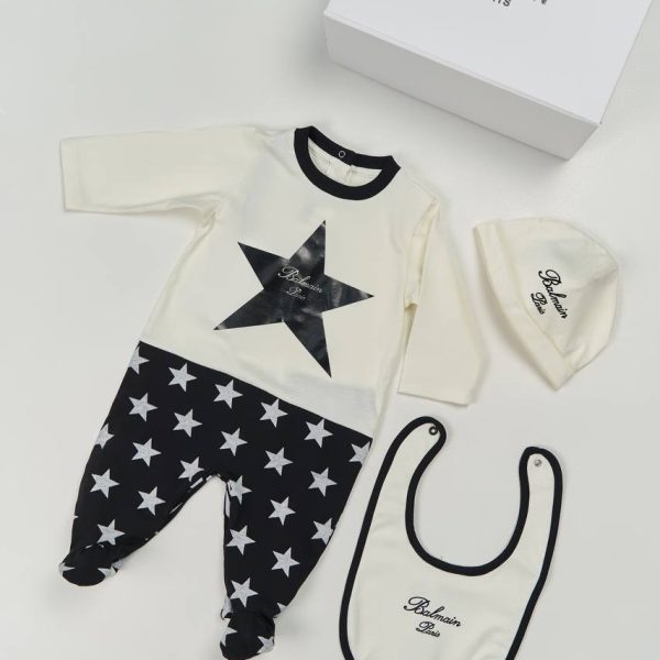 Комбинезон с шапкой и слюнявчиком BALMAIN молочный/черный Девочки 6 м